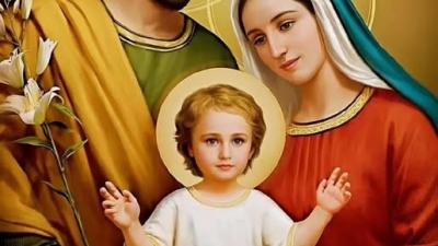 Au centre, comme dans l'original, trois feuilles de trèfle symbolisent la Sainte Famille : Jésus (bleu), Marie (argent/blanc) et Joseph (sable foncé) avec une tige violette. Le bouclier est formé de la Croix de Dieu Seul à gauche, représentant notre spiritualité, et à droite, d'une branche à cinq feuilles symbolisant nos cinq vocations. En bas se trouve notre devise « Gloire à Dieu Seul ». La clef de sol entrelacée avec la croix signifie que « chacun a son chant particulier mais, ils ne forment tous qu’une seule voix » pour chanter en parfaite harmonie « Gloire à Dieu, Gloire à Dieu Seul ».