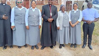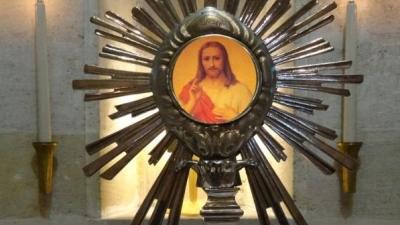 Au centre, comme dans l'original, trois feuilles de trèfle symbolisent la Sainte Famille : Jésus (bleu), Marie (argent/blanc) et Joseph (sable foncé) avec une tige violette. Le bouclier est formé de la Croix de Dieu Seul à gauche, représentant notre spiritualité, et à droite, d'une branche à cinq feuilles symbolisant nos cinq vocations. En bas se trouve notre devise « Gloire à Dieu Seul ». La clef de sol entrelacée avec la croix signifie que « chacun a son chant particulier mais, ils ne forment tous qu’une seule voix » pour chanter en parfaite harmonie « Gloire à Dieu, Gloire à Dieu Seul ».